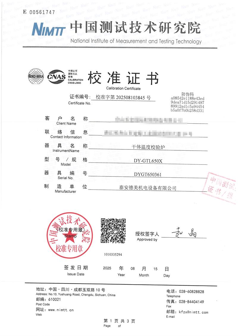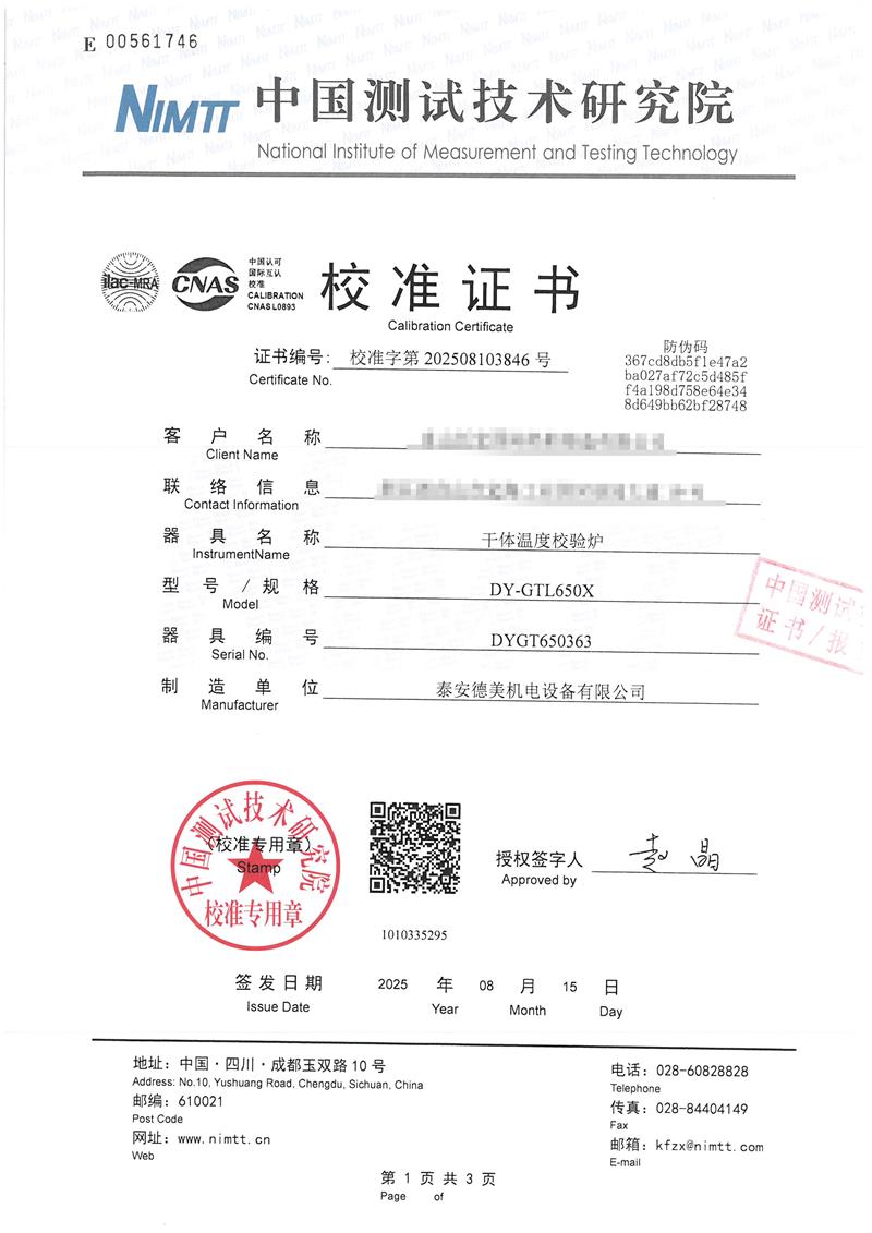| 上一條:高精度低溫黑體(-10-100℃)校準(zhǔn)證書 | 下一條:露點(diǎn)儀檢定、校準(zhǔn)證書 |
