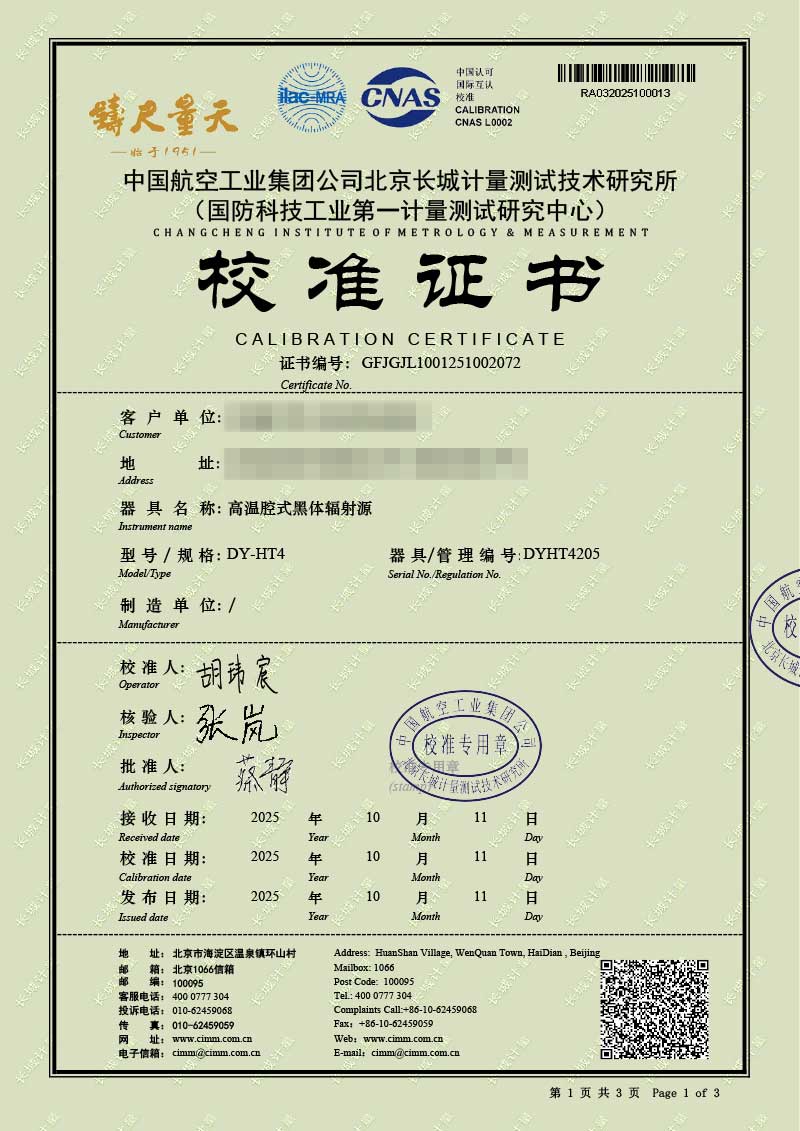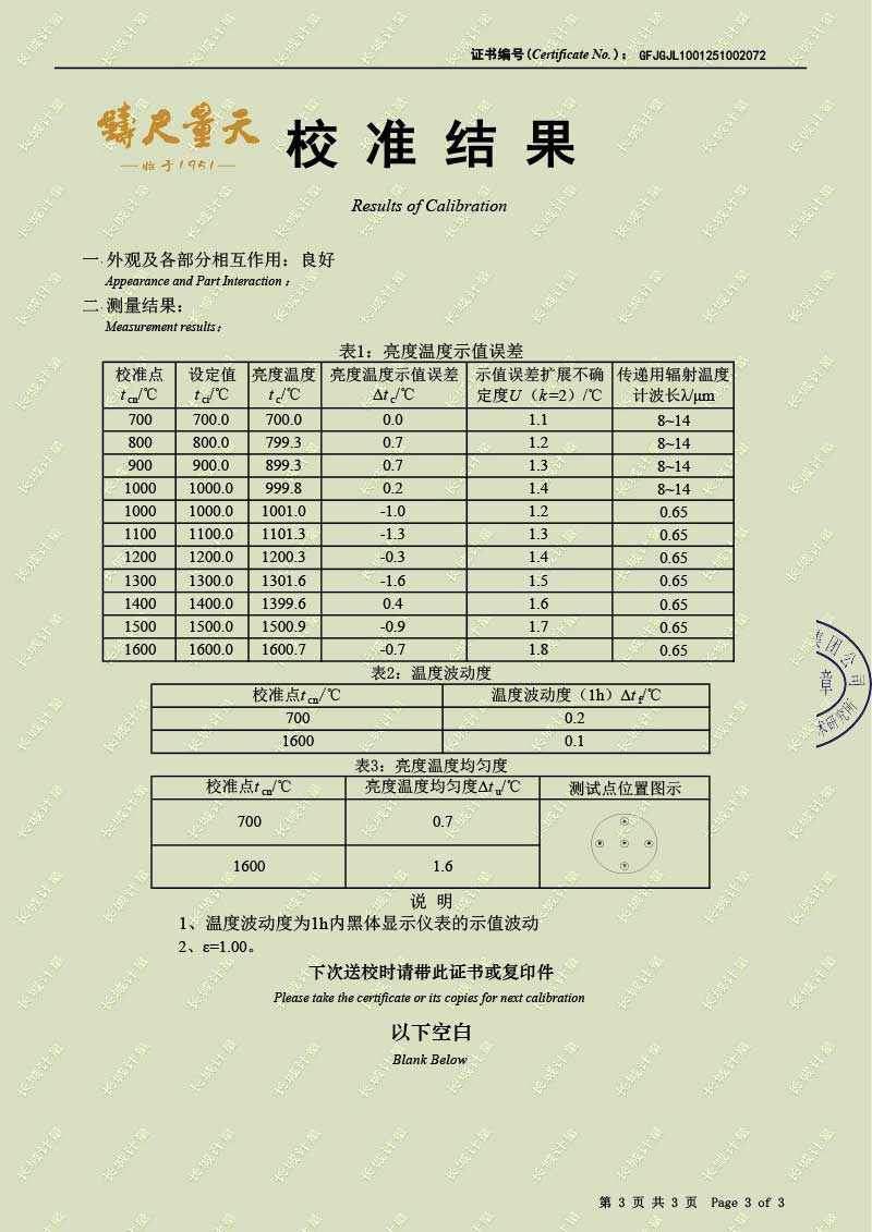 | 上一條:低溫液槽式黑體爐(-40-100℃)校準(zhǔn)證書 | 下一條:露點(diǎn)儀檢定、校準(zhǔn)證書 |