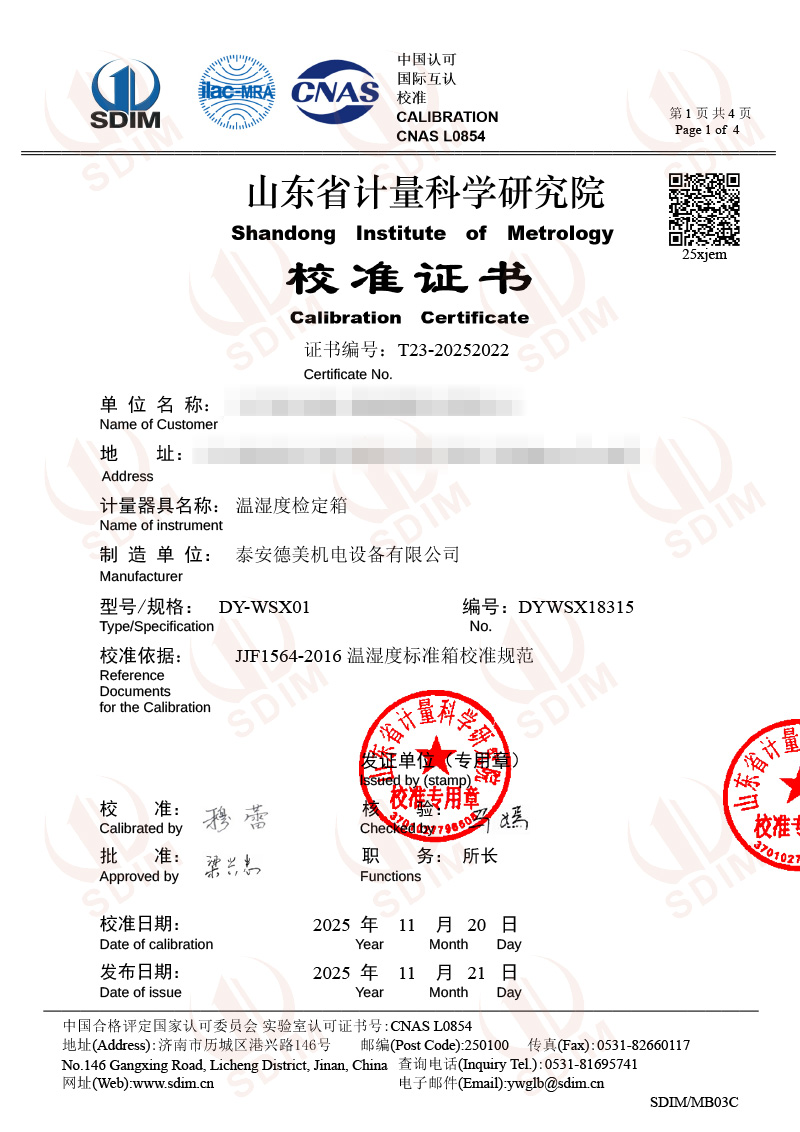 溫濕度檢定箱校準(zhǔn)證書 2025-11-25 本文被閱讀 654 次