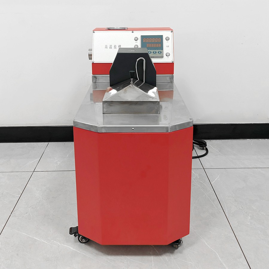 產(chǎn)品采用先進的自動控制系統(tǒng),界面友好,操作方便,控制精度高。主要是由加熱系統(tǒng)、控溫系統(tǒng)、攪拌系統(tǒng)所組成。槽體分混合區(qū)與工作區(qū)。在混合區(qū)內(nèi)由加熱器產(chǎn)生的熱量使槽內(nèi)固態(tài)鹽(介質(zhì))升溫熔化成鹽液,當(dāng)鹽液溫度上升到接近設(shè)定溫度時,控溫系統(tǒng)根據(jù)感溫器測得的溫度來控制加熱器工作,再經(jīng)過攪拌系統(tǒng)的強烈攪拌充分均勻后的鹽液(介質(zhì))送入少受外界干擾的工作區(qū)。從而得到一個溫度穩(wěn)定溫場均勻的液體空間。