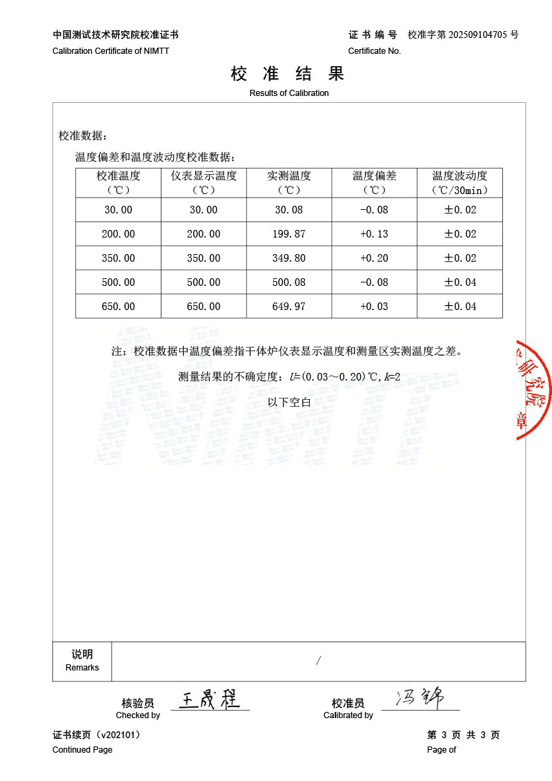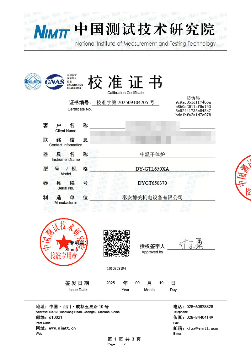 | 上一條:高溫干體爐(300-1200℃)校準(zhǔn)證書 | 下一條:露點(diǎn)儀檢定、校準(zhǔn)證書 |