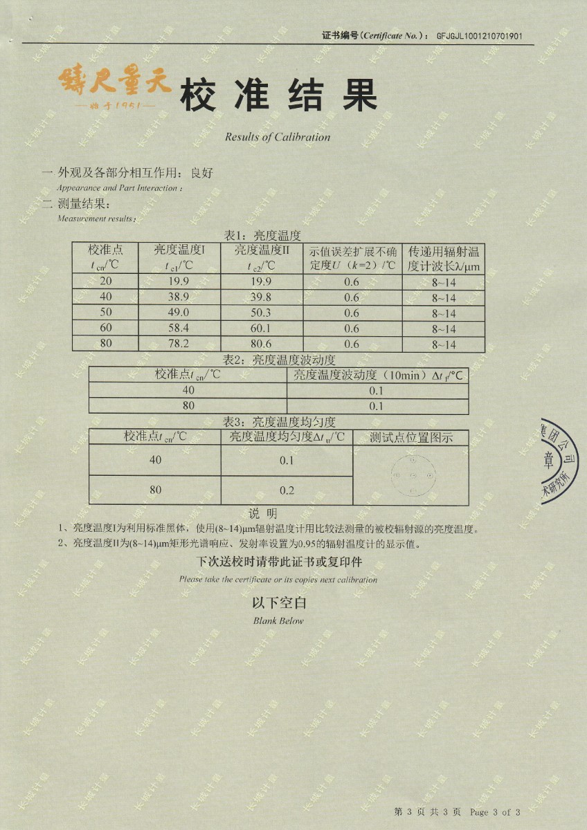 上一條:山東博測計量檢測技術(shù)有限公司-黑體輻射源下一條:溫濕度檢定箱校準(zhǔn)證書