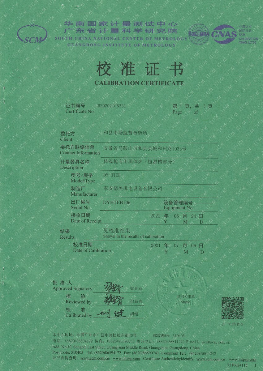 | 上一條:和縣市場監(jiān)督檢驗(yàn)所-耳溫黑體(黑體輻射源) | 下一條:露點(diǎn)儀檢定、校準(zhǔn)證書 |