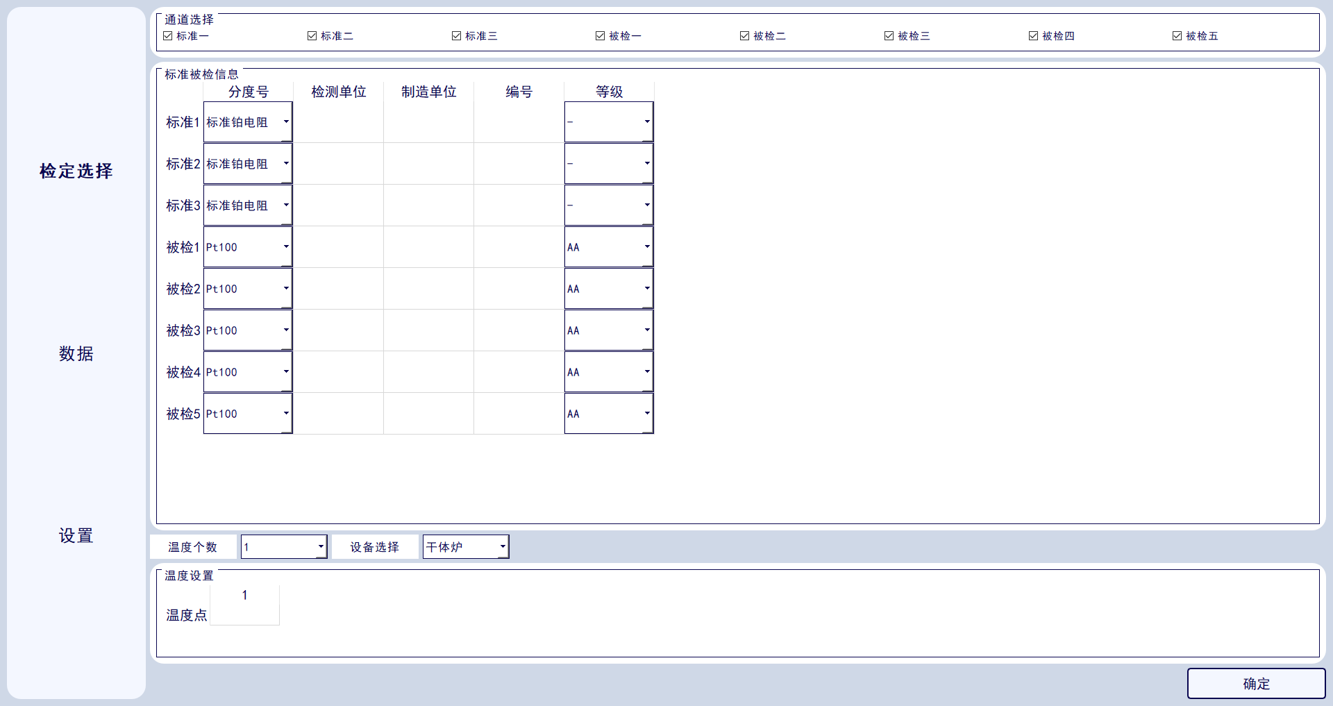 10.設(shè)備可配套干體爐、標(biāo)準(zhǔn)傳感器、備檢傳感器,配備可實(shí)現(xiàn)小型上位機(jī)設(shè)置,實(shí)時(shí)控制干體爐溫度設(shè)置、被檢標(biāo)準(zhǔn)器、被檢傳感器當(dāng)前溫度值、電阻值、波動(dòng)度曲線(xiàn)。