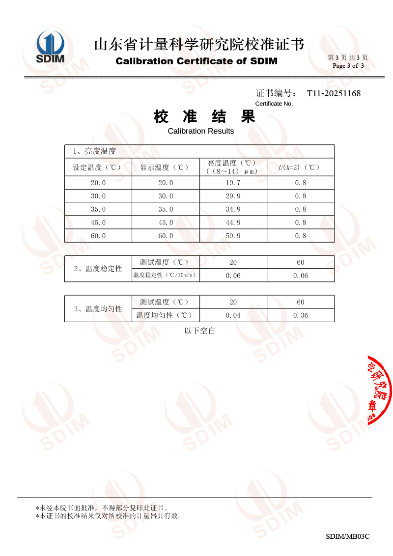 高精度低溫黑體(-10-100℃)校準(zhǔn)證書 2025-8-6 本文被閱讀 2275 次