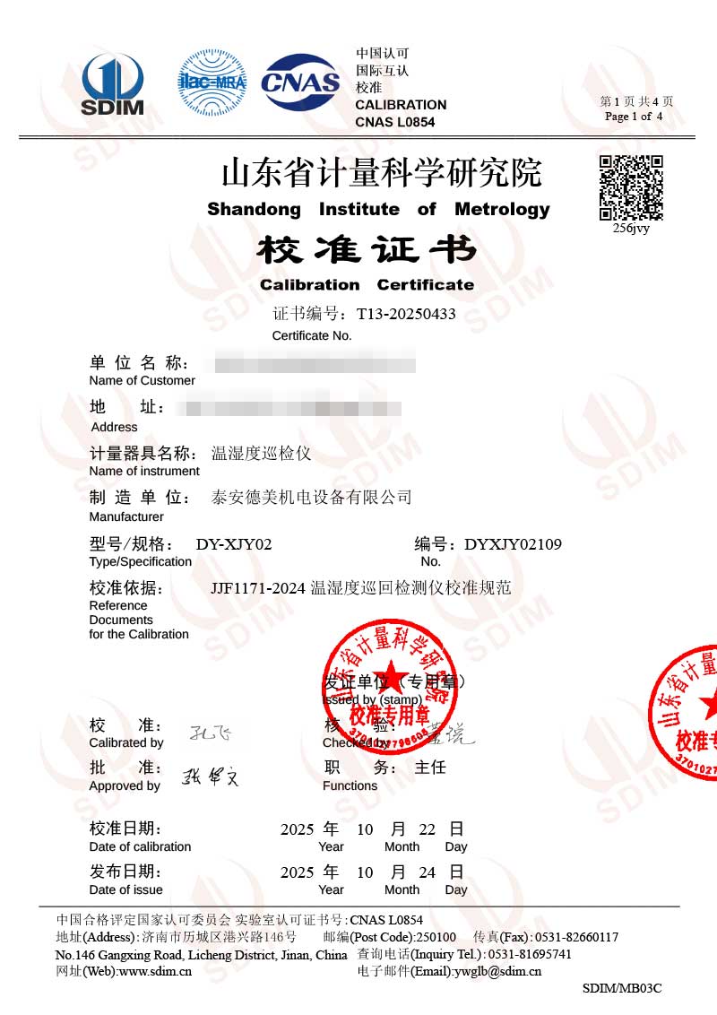 溫濕度巡檢儀校準(zhǔn)證書 2025-10-30 本文被閱讀 867 次