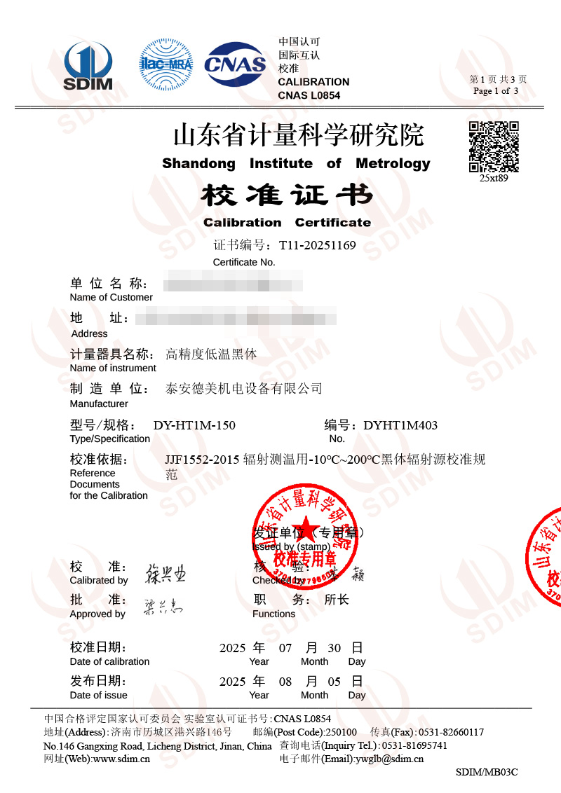 | 上一條:干體式溫度校準(zhǔn)器(40~650℃)校準(zhǔn)證書 | 下一條:露點儀檢定、校準(zhǔn)證書 |
