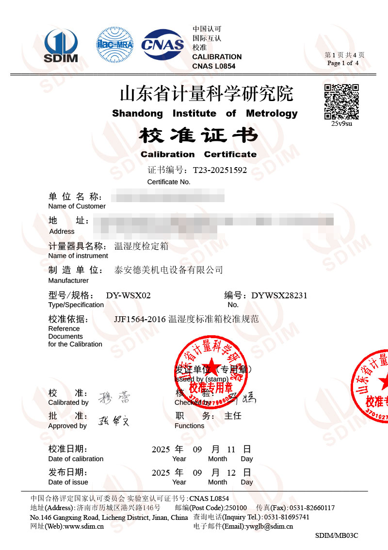 | 上一條:輻射源黑體爐(室溫+5-300℃)校準(zhǔn)證書(shū) | 下一條:溫濕度檢定箱校準(zhǔn)證書(shū) |